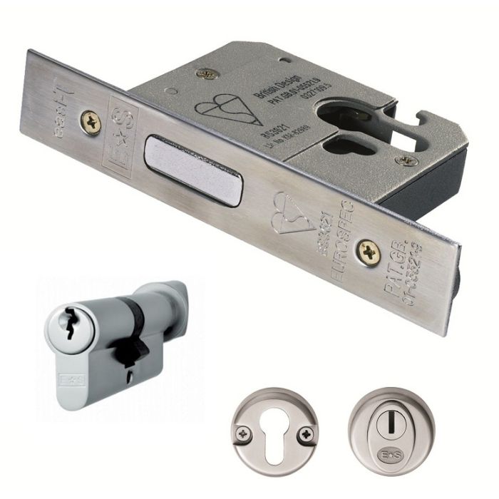 EDB5025CT Satin Stainless 63mm Euro Deadlock Complete Set To BS8621