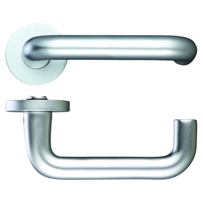 Zoo ZAA030SA Safety Lever On Round Rose Door Handle Satin Aluminium To BS8300