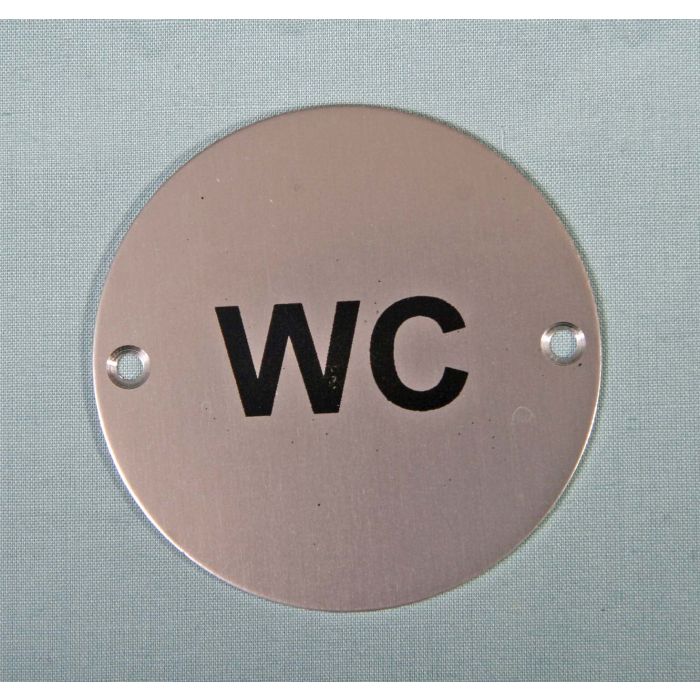 Wc Symbol 75Mm Dia Satin Aluminium Screen Printed Sign Drilled + Csk