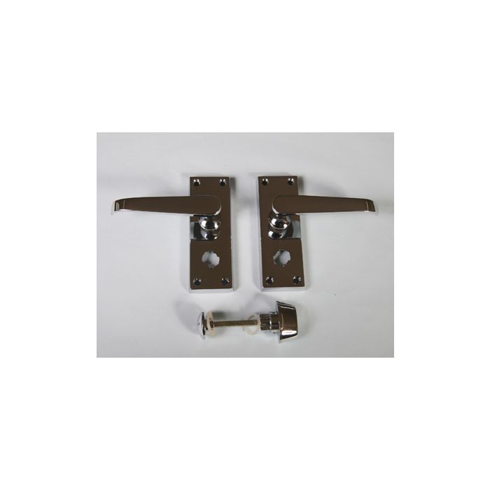 A traditional Victorian styled handle on a plain rectangular backplate. A straight shaped lever which curves round at the end for easy ergonomic use. The heavy pattern design ensures that it will last for many years despite constant use in busy settings such as offices or restaurants. Privacy furniture is different from bathroom furniture as the turn mechanism engages a cam within the handle assembly locking the handle dead, where as the turn on bathroom furniture engages the deadbolt within the separate bathroom lock. Privacy furniture requires a separate mortice tubular latch not a bathroom lock. Comes with a 10 year mechanical guarantee and is Fire door rated.