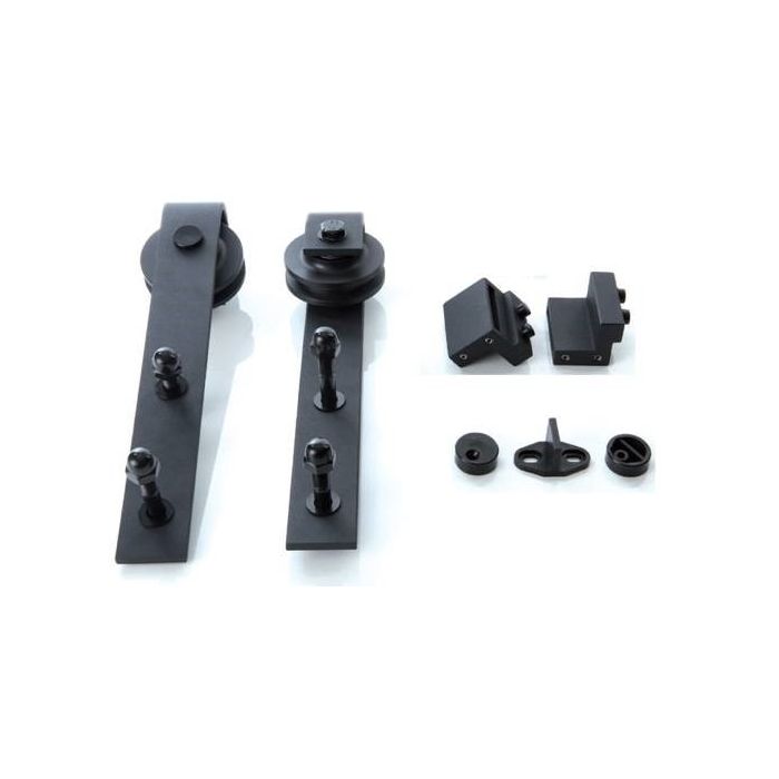 - Kit contains 2 x hangers (boxes with fixings), 2 x door stops, 2 x anti jump blocks and screws, 1 x floor guide and screws